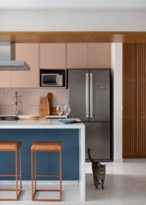 Em recente projeto, o arquiteto recebeu a missão de adaptar os espaços para os gatos da moradora. O trabalho foi além de simplesmente adicionar elementos lúdicos à vida em confluência, envolveu acima de tudo, uma integração cuidadosa de funcionalidade e estilo.