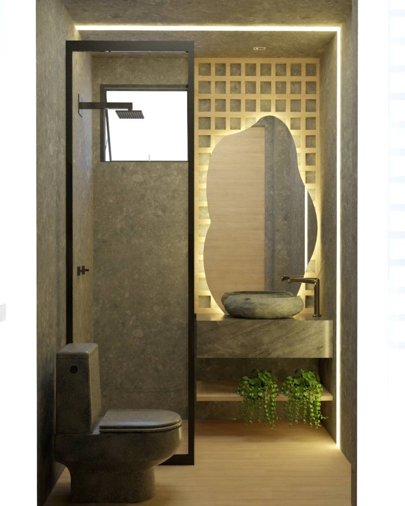 Projeto de lavabo com Agata Carbono NAT 90x90