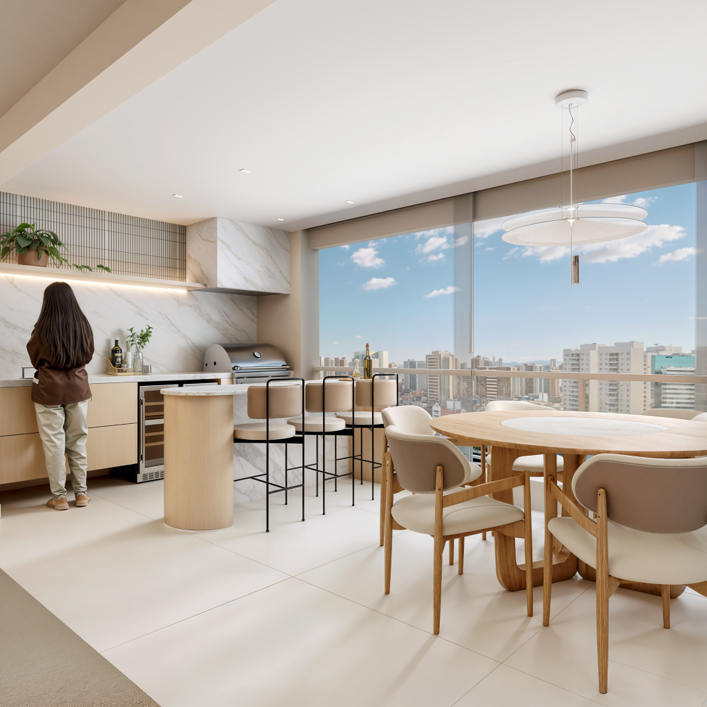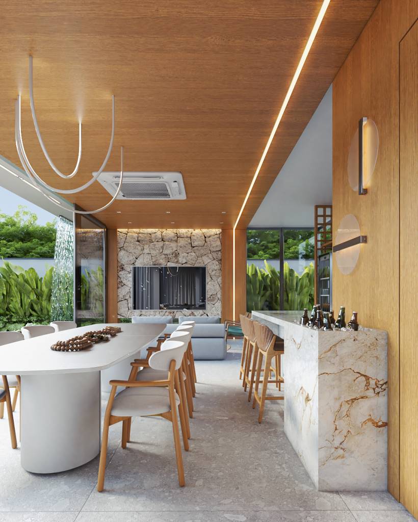 Área gourmet em ambiente aberto com piso Bergamo AC 1.20X1.20m