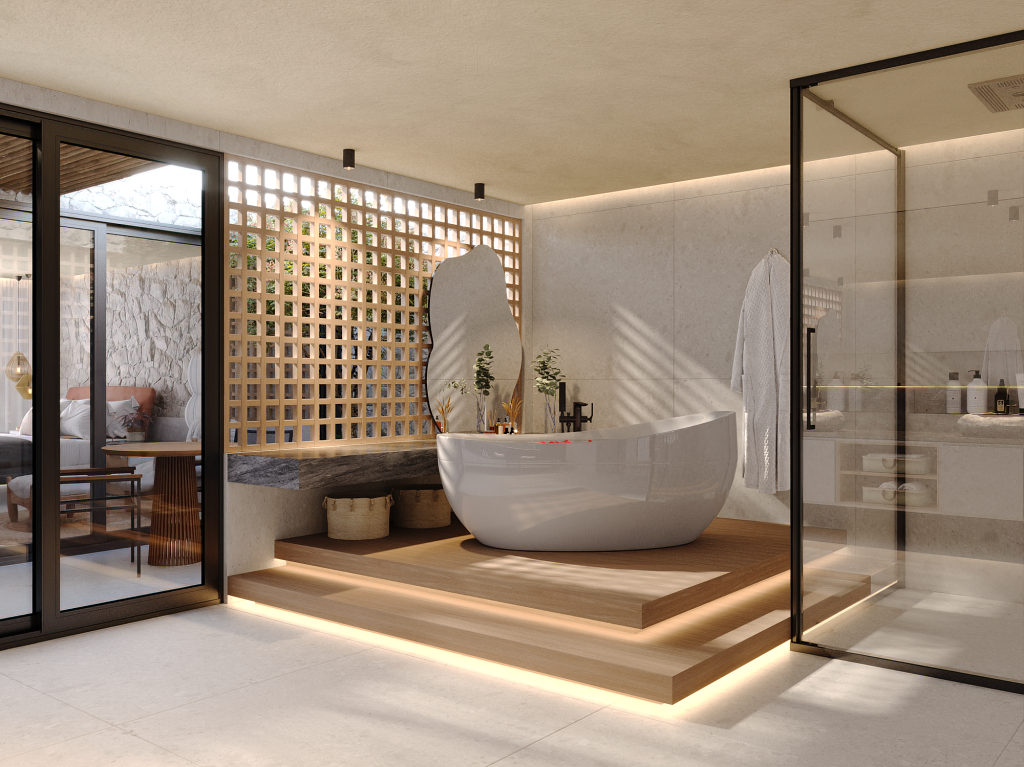 Produtos Utilizados: BERGAMO OFF WHITE AC 120X120, MARMO GRIS PO 80X160